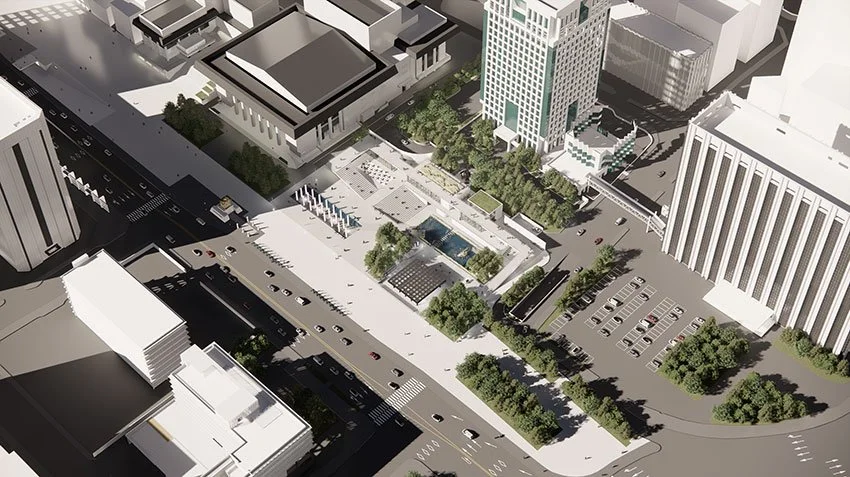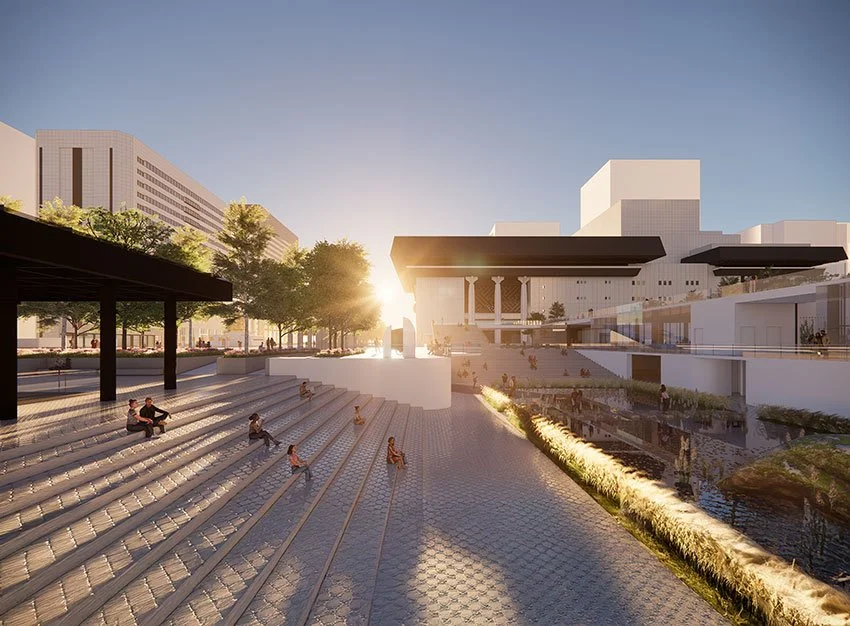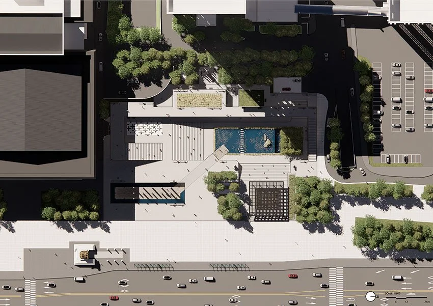 Sejong-ro Park, nestled between Gwanghwamun Square and powerful national monuments like Gyeongbokgung Palace, Sejong Center for the Performing Arts, and government buildings, continues to function as an urban park. However, its stilted structure and level differences diminish its presence, obscuring the inherent identity and sense of place within the grounds. The existing underground parking structure, currently used as a parking lot, is extremely dense due to its limited space and the need to accommodate a large number of vehicles. The design was beneficial in terms of structural module consistency and structural stability when opened to the ground. The lowered level of the existing relic exhibition space was utilized to its maximum advantage. The central sunken Memorial Garden and the relic exhibition space were designed to seamlessly connect, creating a unique urban sequence within Gwanghwamun Square. The Memorial Pillars, which commemorate and symbolize the sacrifices of the 22 countries that participated in the Korean War, are media art pieces created using display panels. These displays are intended to serve as a presenter, conveying the symbols and news of each nation through various content. On the ground floor, the flow of traffic from the sunken area extends to the roof, circulating throughout the site. The open structure to Gwanghwamun Square allows visitors to experience the changing flow of the urban landscape at various nodes. Ultimately, the design aims to create a sense of openness, offering a subtle respite from the urban context while maintaining a distinct presence, yet maintaining a strong sense of public identity. Seoul Memorial Garden consists of five major spaces. The sunken park, created by opening up the upper slab of the existing Sejong-ro Park's first basement level, features a water feature and a two-level Seoul Memorial Garden, forming its centerpiece. Surrounding this space are the Memorial Pillars, symbolizing the sacrifices of the 22 Korean War veterans, and a two-way accessible stair plaza. Part of the existing relic exhibition space was partially removed to connect directly with the Seoul Memorial Garden on the first basement level, actively utilizing the difference in levels. The intention was to create a sense of significance and spatiality within the urban core, through openings to the underground space and the sky above. Specifically, the Seoul Memorial Garden and Memorial Pillars feature long connecting passageways that expand the space, maximizing their symbolic impact. Above all, the three-dimensional and diverse spatial composition will provide visitors with diverse spatial experiences and new memories, thereby perpetuating the continuity of the "Garden of Memory.